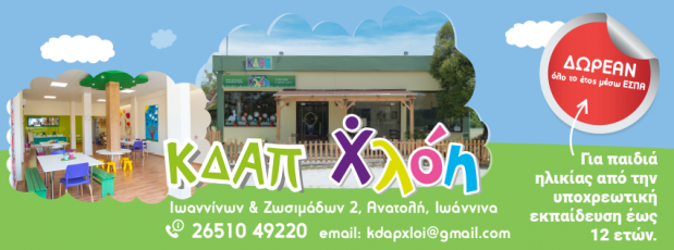 customer tabsΕπικοινωνίαΗλικίες από 5 ετών - 12 ετών, μελέτη, διαδραστικά παιχνίδια, δημιουργική απασχόληση.Κέντρο Δημιουργικής Απασχόλησης Παιδιών στην Ανατολή Ιωαννίνων.Κέντρα Δημιουργικής Απασχόλησης - ΜελέτηςΕκπαίδευσηΙωαννίνων & Ζωσιμάδων 2, ΑνατολήΑΝΑΤΟΛΗ ΙΩΑΝΝΙΝΩΝΙΩΑΝΝΙΝΑΗΠΕΙΡΟΣ 2651049220kdapxloi@gmail.comΚΔΑΠ Χλόη - Ιωάννινα Το προτείνω (έχει προταθεί 0 φορές) ΦωτογραφίεςFacebook LikeShare on FacebookTweet Widget